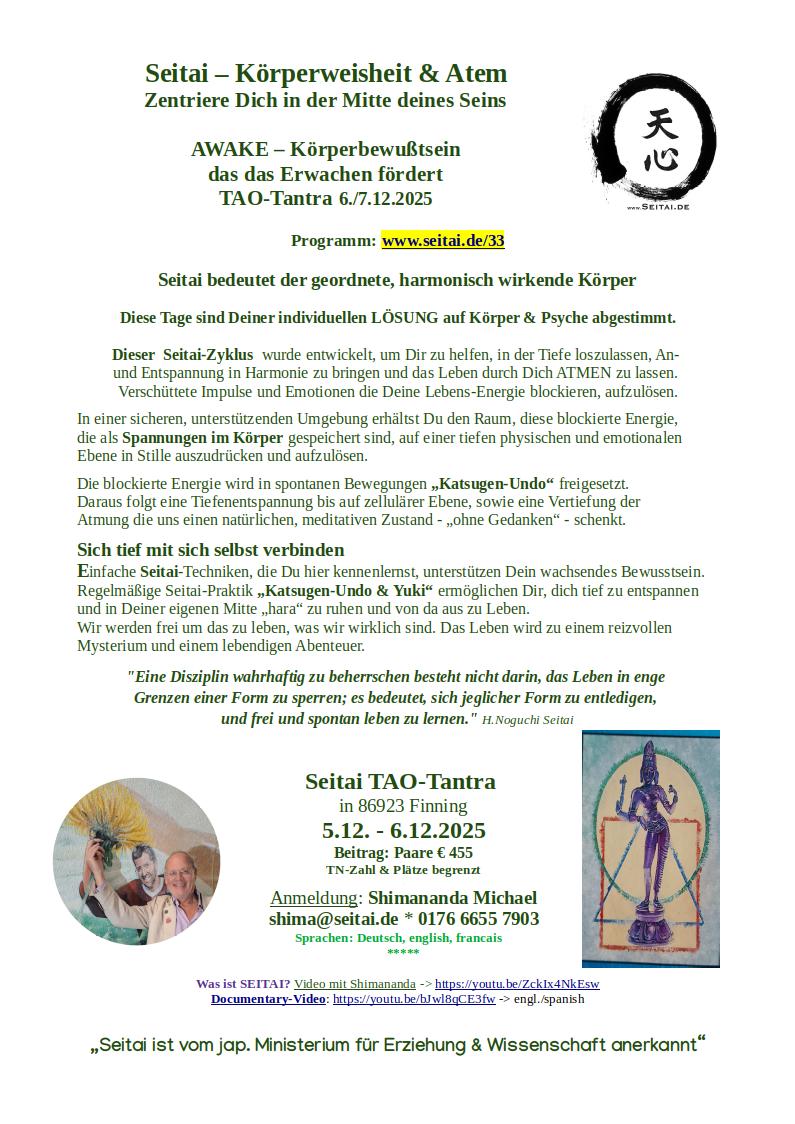 Anmeldung: shima (at) seitai.de